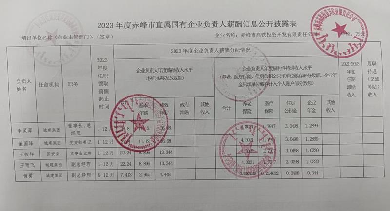 2023年度赤峰市直屬國(guó)有企業(yè)負(fù)責(zé)人薪酬(赤峰市高鐵開發(fā)有限責(zé)任公司)