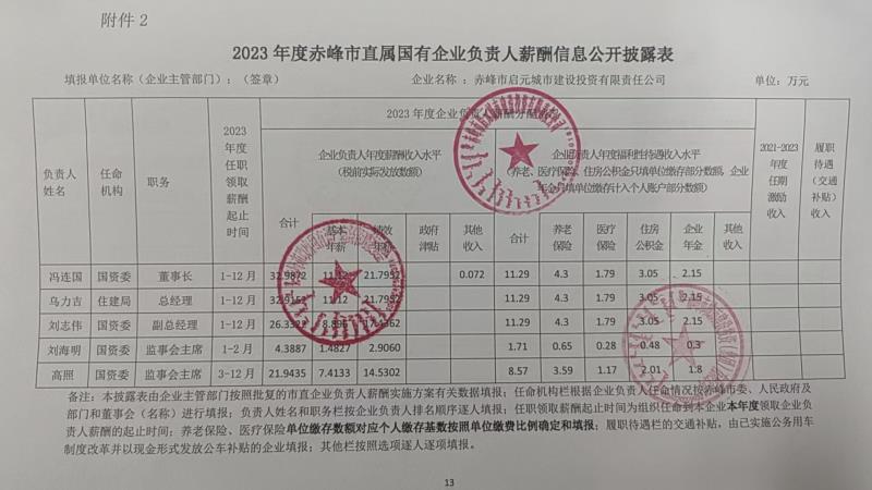2023年度赤峰市直屬國有企業(yè)負責人薪酬(赤峰市啟元城市建設投資有限責任公司)