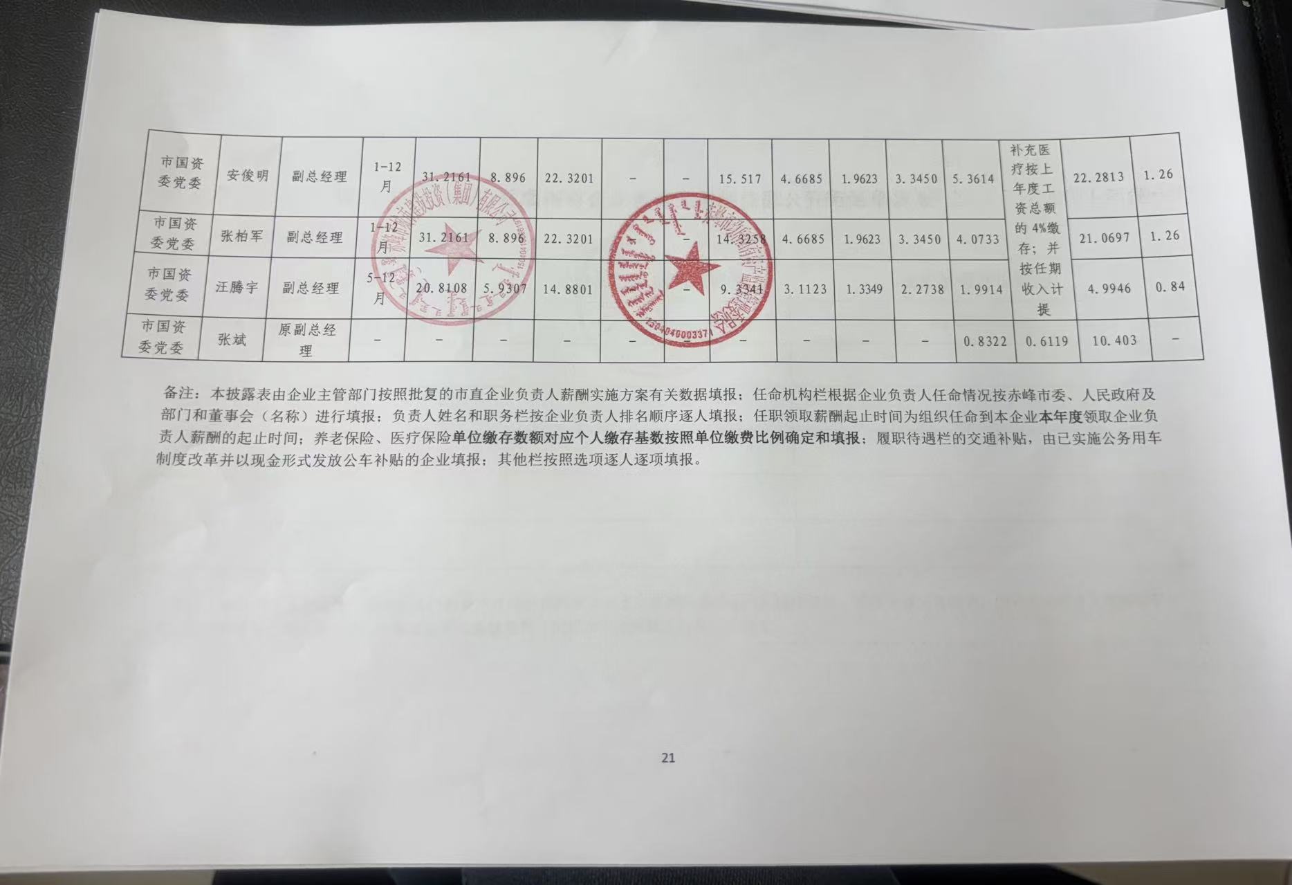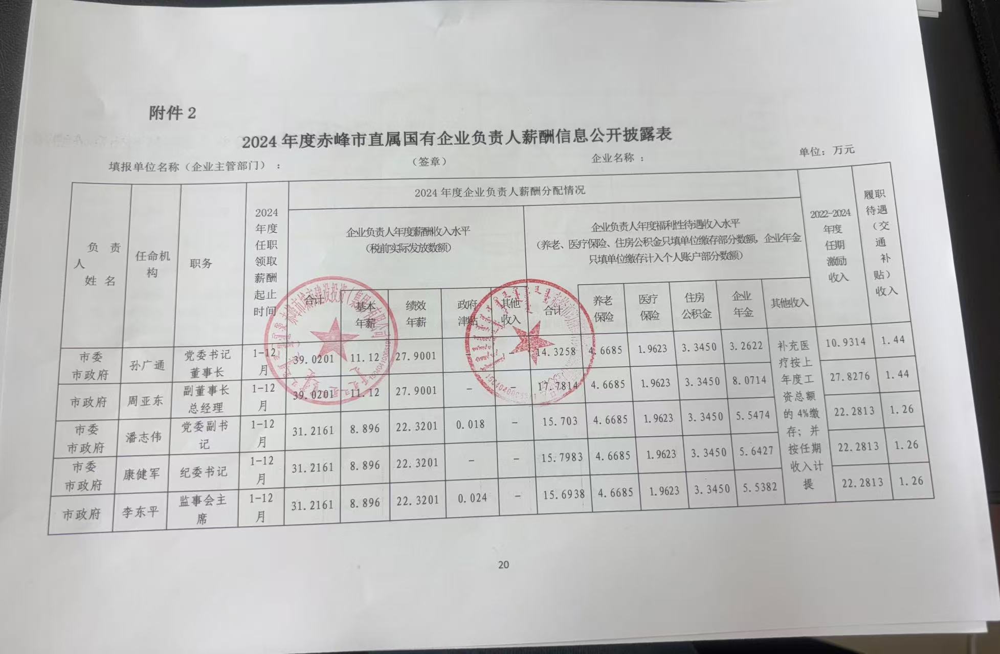 2024年度赤峰市直屬國有企業(yè)負責人薪酬信息公開