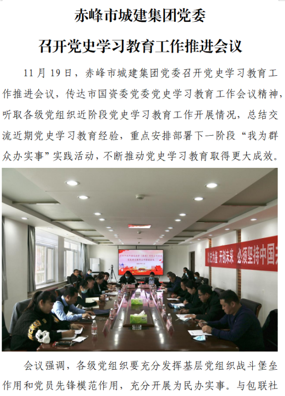 赤峰市城建集團黨委 召開黨史學習教育工作推進會議
