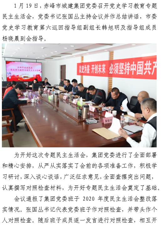 赤峰市城建集團黨委 召開黨史學(xué)習(xí)教育專題民主生活會