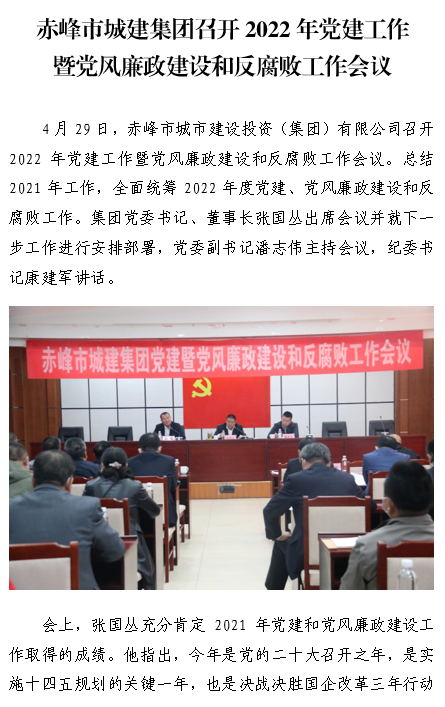 赤峰市城建集團(tuán)召開2022年黨建工作 暨黨風(fēng)廉政建設(shè)和反腐敗工作會議