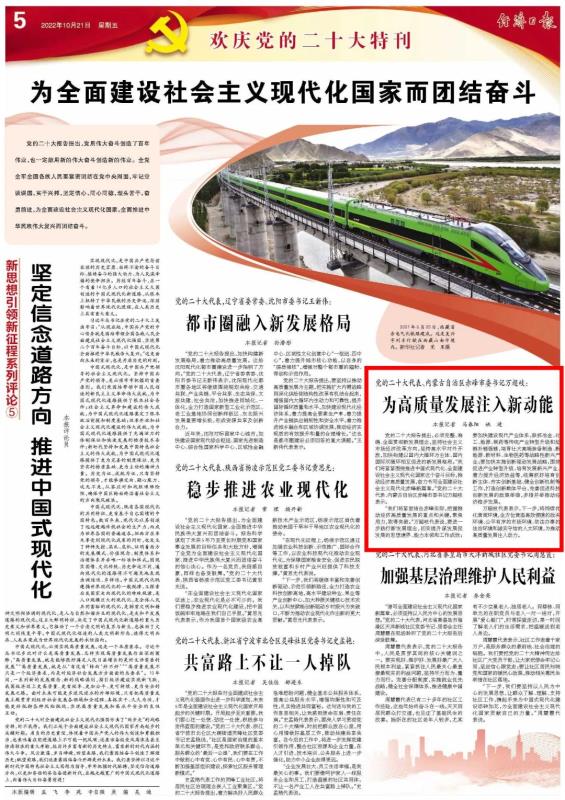 黨的二十大報(bào)告提出,必須完整、準(zhǔn)確、全面貫徹新發(fā)展理念,堅(jiān)持社會(huì)主義市場(chǎng)經(jīng)濟(jì)改革方向,堅(jiān)持高水平對(duì)外開(kāi)放,加快構(gòu)建以國(guó)內(nèi)大循環(huán)為主體、國(guó)內(nèi)國(guó)際雙循環(huán)相互促進(jìn)的新發(fā)展格局?!拔覀儗⒕o緊圍繞推進(jìn)中國(guó)式現(xiàn)代化、全面建設(shè)社會(huì)主義現(xiàn)代化國(guó)家這個(gè)奮斗目標(biāo),推動(dòng)經(jīng)濟(jì)高質(zhì)量發(fā)展,奮力書(shū)寫(xiě)全面建設(shè)社會(huì)主義現(xiàn)代化赤峰新篇章。”黨的二十大代表、內(nèi)蒙古自治區(qū)赤峰市委書(shū)記萬(wàn)超岐表示。
