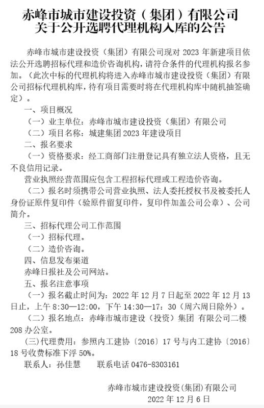 下一篇:關(guān)于赤峰市城市建設(shè)投資(集團(tuán))有限公司選聘建設(shè)項(xiàng)目可行性研究、社會穩(wěn)定風(fēng)險(xiǎn)評估、環(huán)境影響評價(jià)編制單位入庫公告