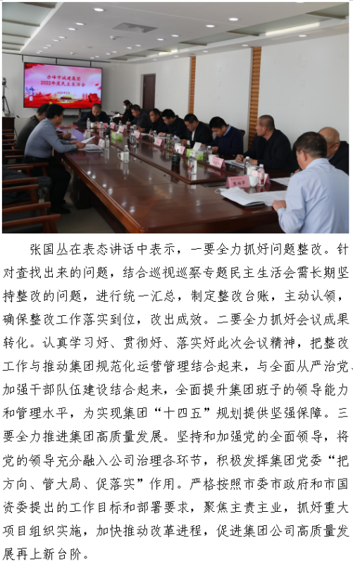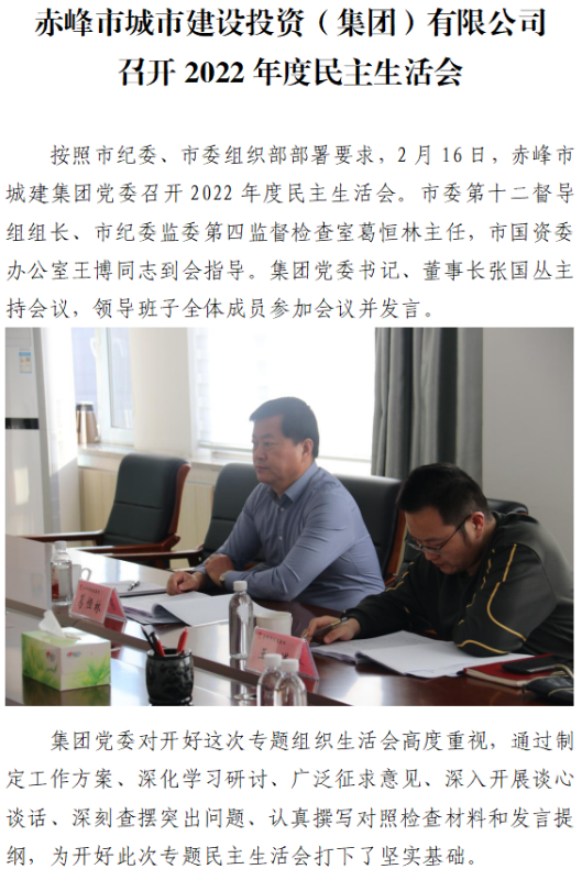 下一篇:赤峰市城市建設(shè)投資(集團(tuán))有限公司 機(jī)關(guān)黨支部召開2022年度組織生活會(huì) 和民主評(píng)議黨員大會(huì)